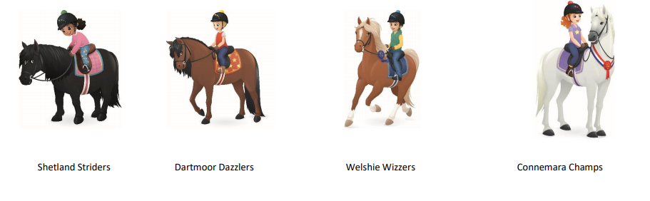 Pony Stars is our Junior Challenge Awards helping children to discover, develop and nurture their love for ponies and the outdoors. With over 100 topics for children to explore, Pony Stars will ignite a passion for ponies, build knowledge and cement friendships that will last a lifetime. With four key groups, Pony Stars enables long-term progression with a range of activities that will develop knowledge, skills and self-confidence. In each group your junior riders will work through sets of challenges that make up topics within set themes.